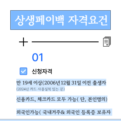 만 19세 이상(2006년 12월 31일 이전 출생자)이면서 2024년 카드 사용 실적이 있는 분이라면 누구나!