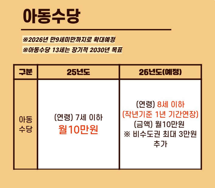 2026년부터는 지급 연령이 만 11세까지 점점 확대될 예정이에요.